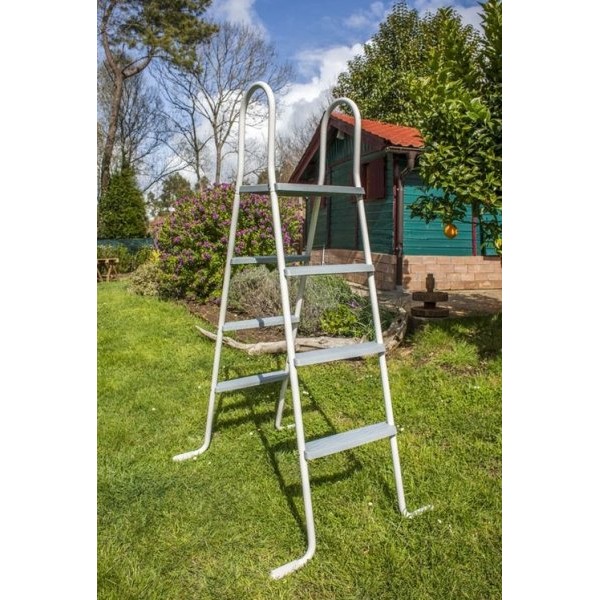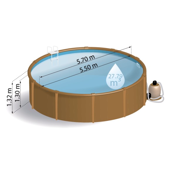 Piscine conçue entièrement en acier : structure et margelles.Son installation facile ne nécessite pas de dalle en béton obligatoire.